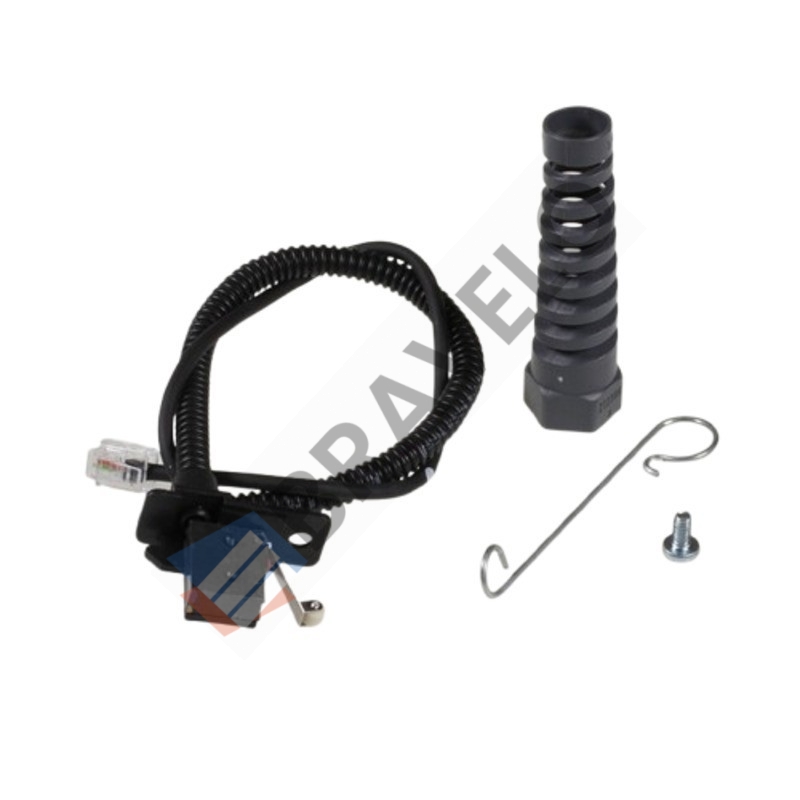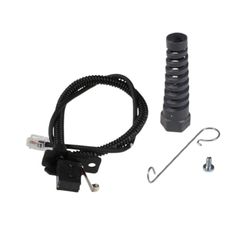 Mikrowyłącznik przeznaczony do wykrywania luzu linki w bramach przemysłowych Hormann. Wyposażony w elastyczny przewód PUR o długości 500 mm zakończony wtyczką RJ-11. Zestaw zawiera niezbędne elementy montażowe.