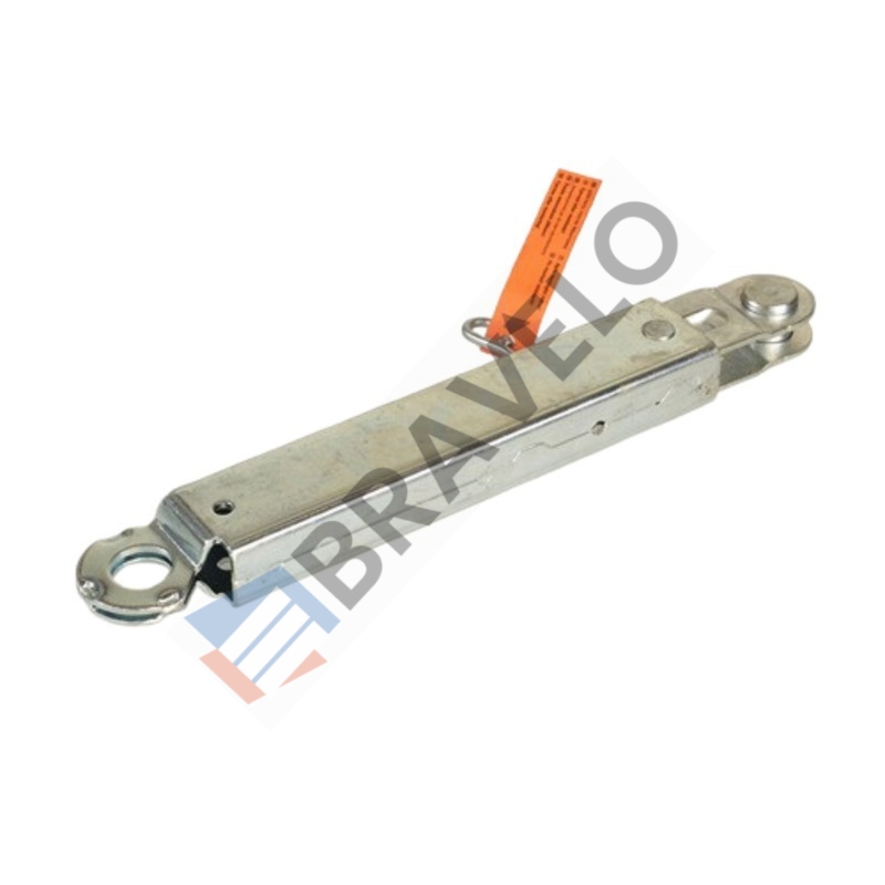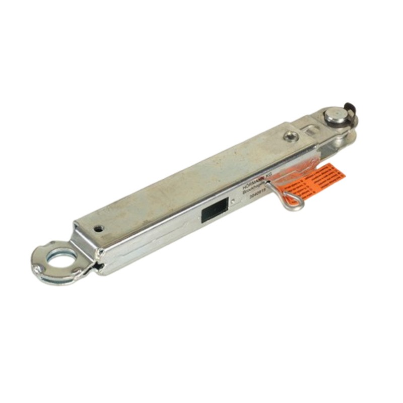 Element zabezpieczający przed skutkami poluzowania linki w bramach przemysłowych Hormann z prowadzeniem typu H lub V. Wyposażony w gniazdo do montażu mikrowyłącznika, który automatycznie reaguje na luz na linie nośnej.