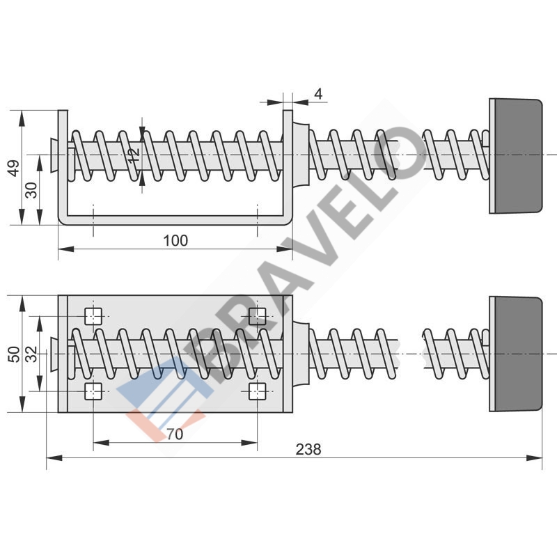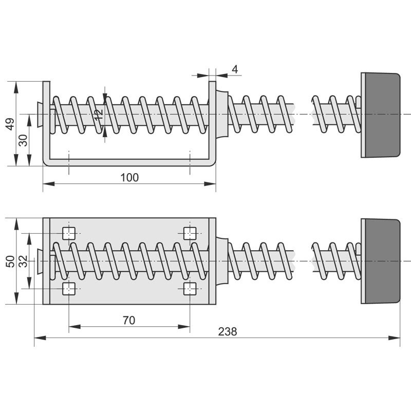Odbój sprężynowy 220mm z kątownikiem montażowym