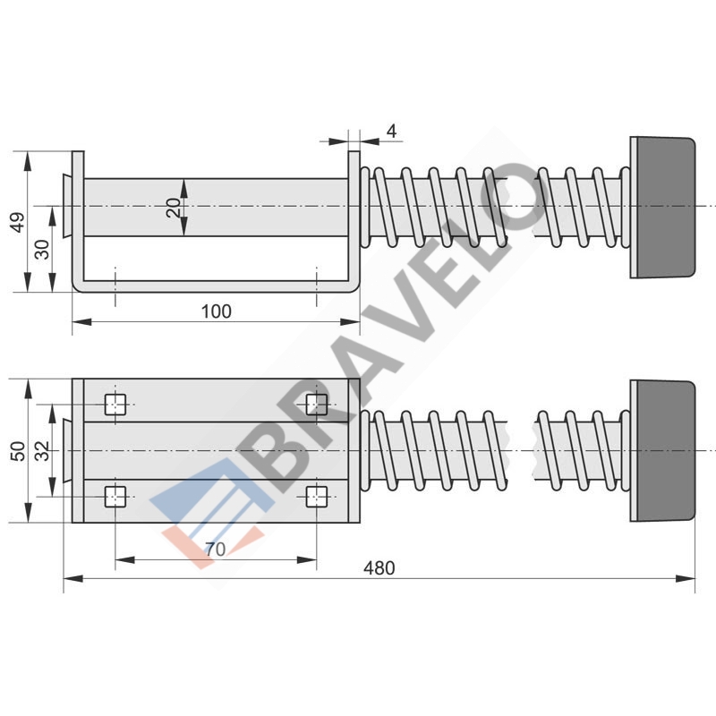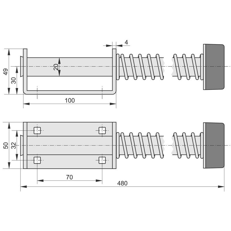 Odbój sprężynowy 500mm z kątownikiem montażowym