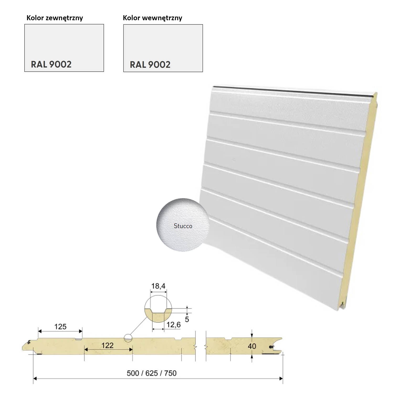 Panel typu Hormann 750 ral 9002/9002