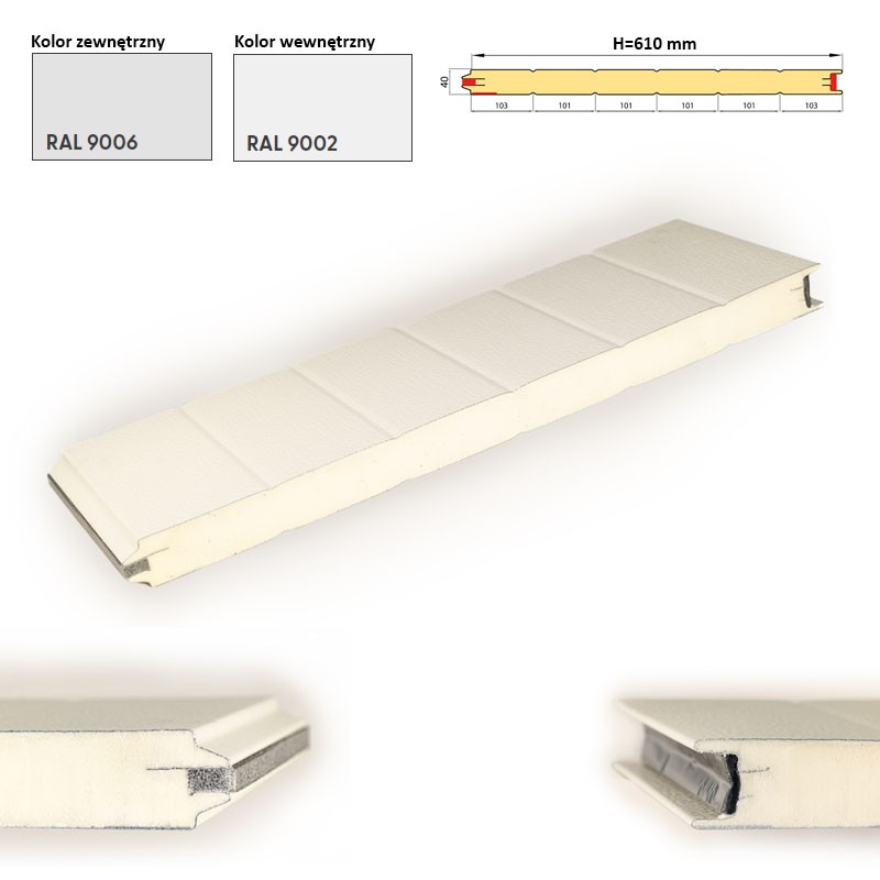 Panel przemysłowy 610 mm, RAL 9006/9002