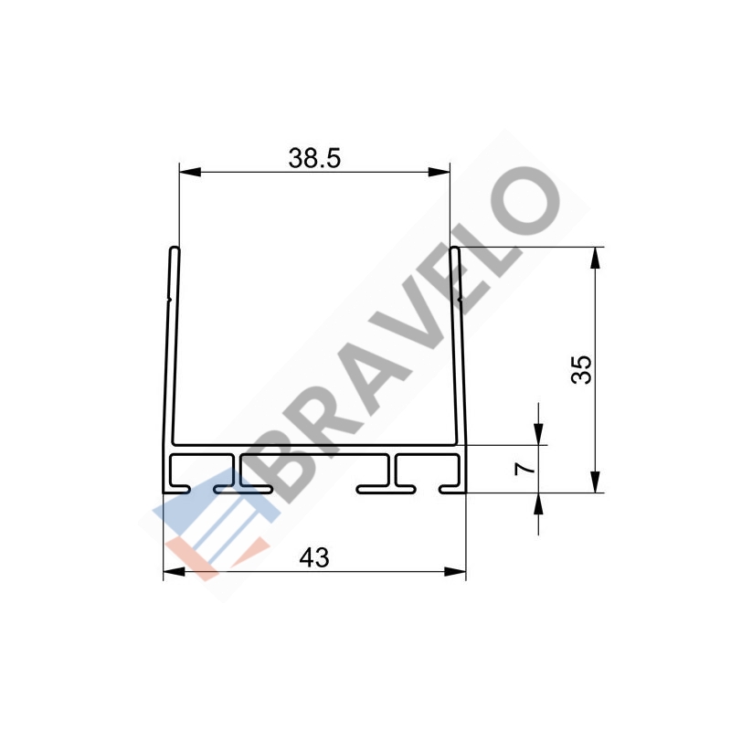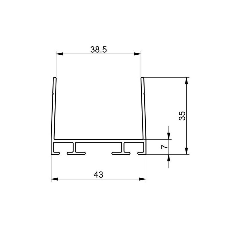 Profil dolny/górny aluminiowy, odpowiedni pod montaż uszczelek gumowych.
