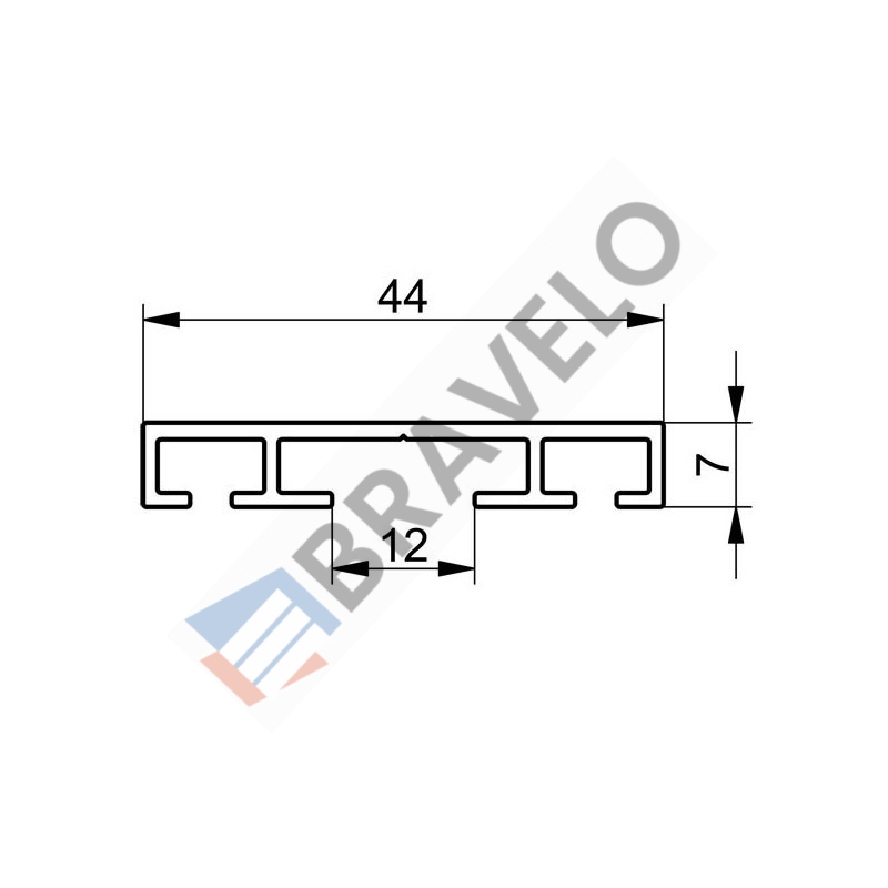 Profil górny/dolny aluminiowy, płaski 44x7 mm