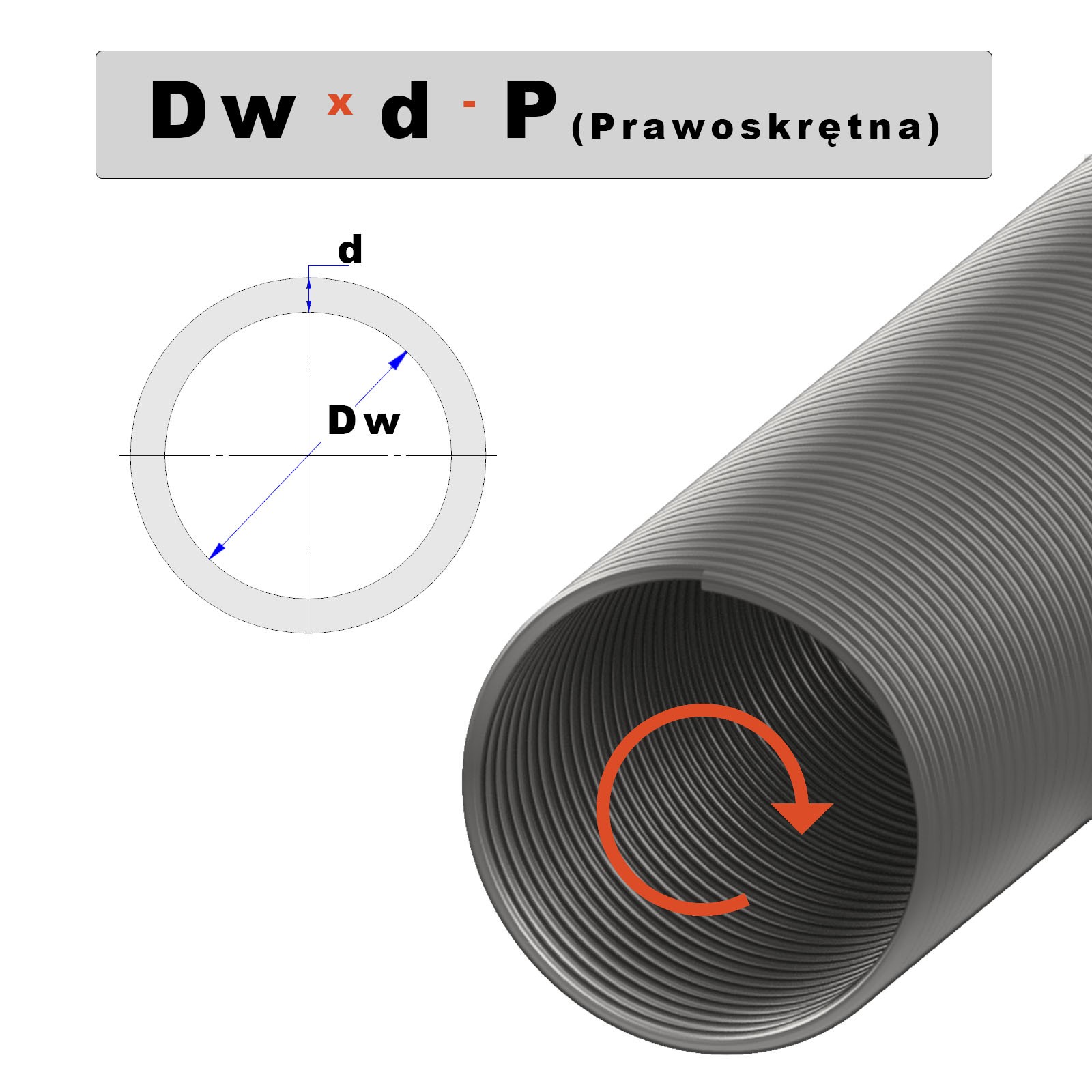 Sprężyna śrutowana - lakierowana 152 mm x 10,0 mm - Prawoskrętna