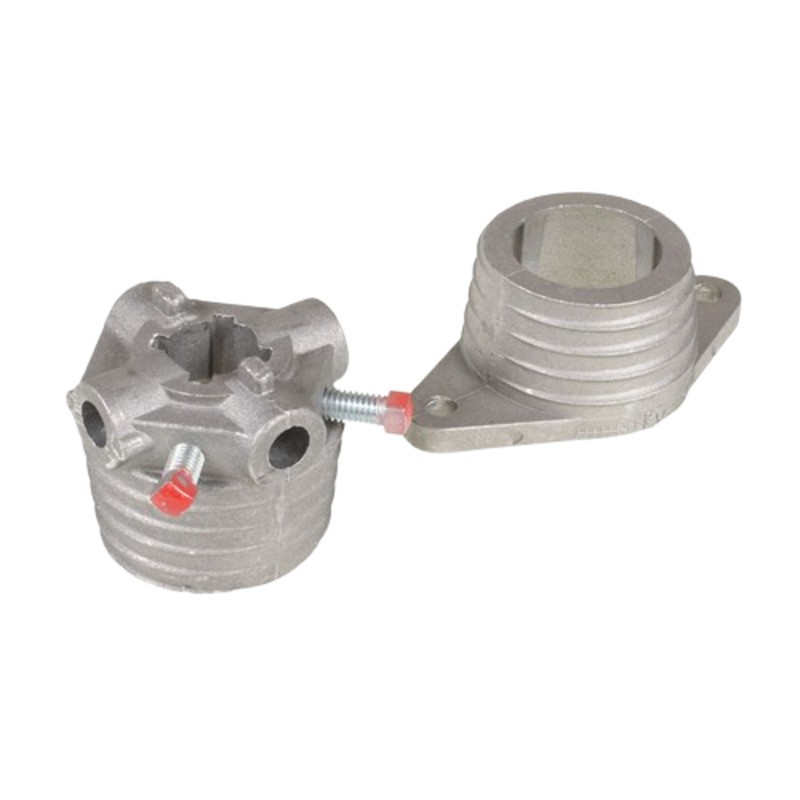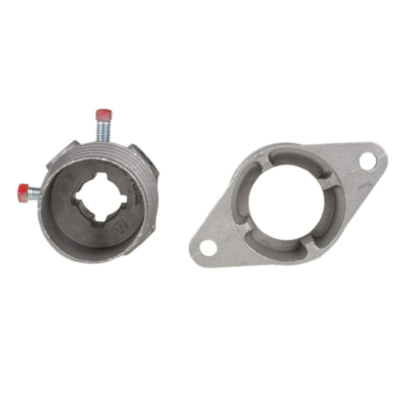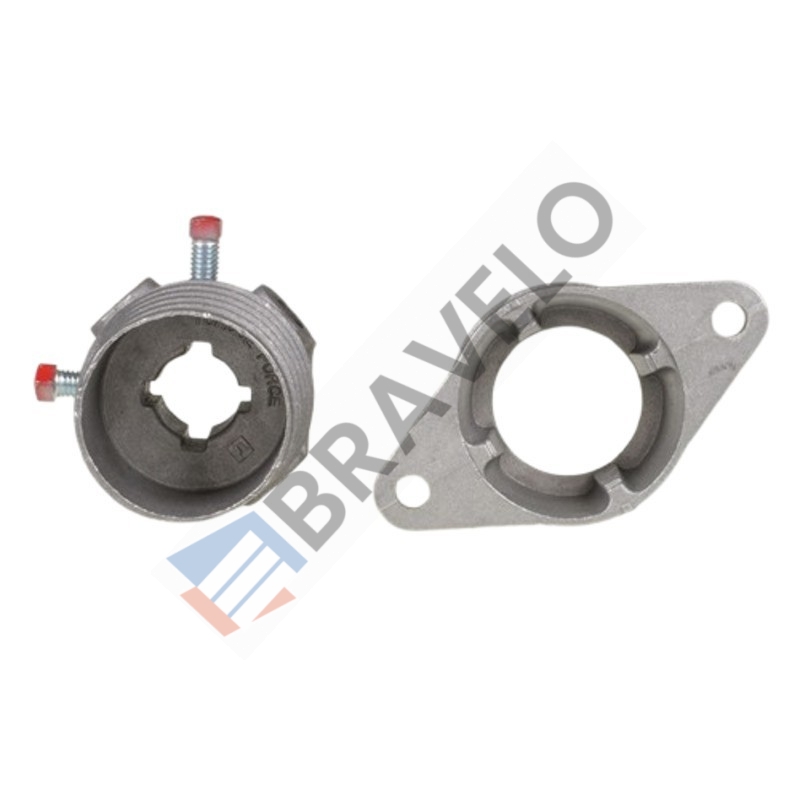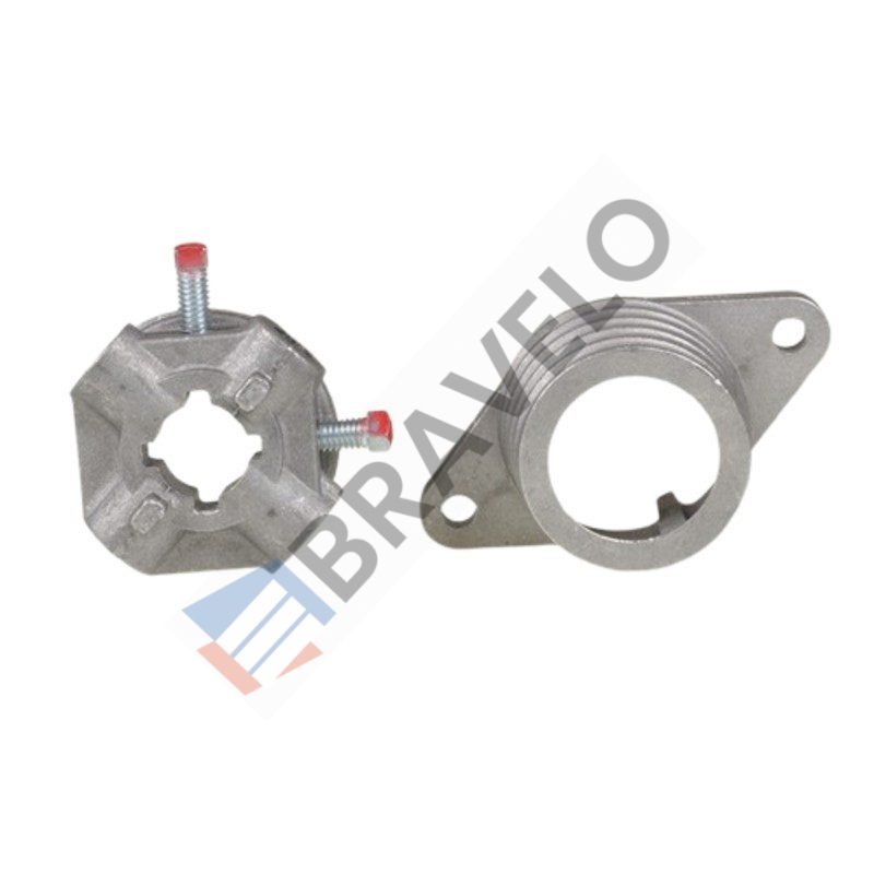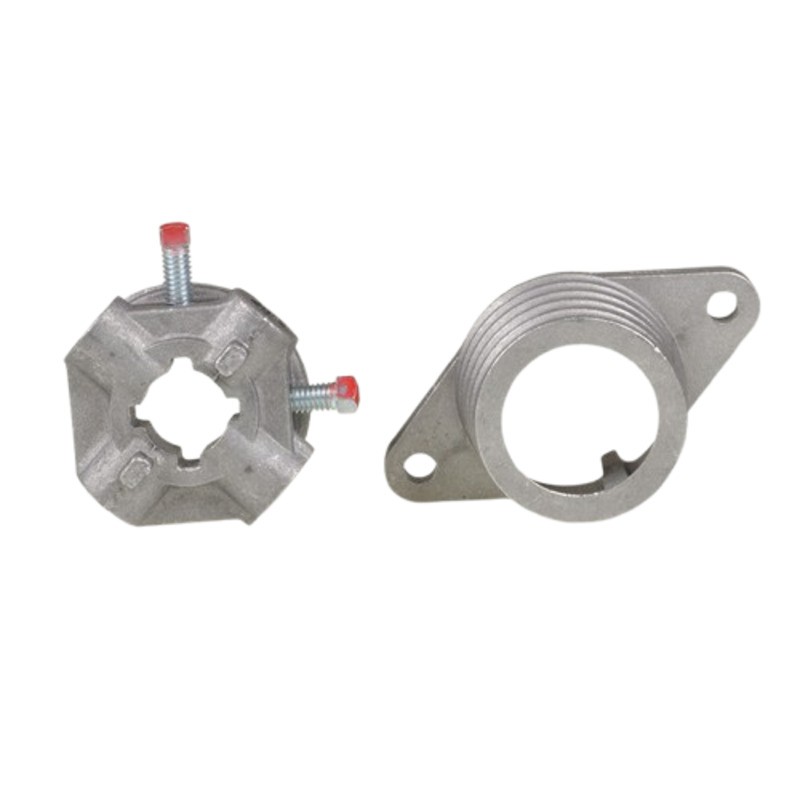 Zestaw zawiera 1 czop do nakręcania sprężyn i 1 czop stacjonarny. Odległość osi otworów do mocowania wynosi 105mm. Czopy dostarczane są razem z dwoma śrubami do mocowania.