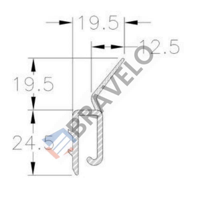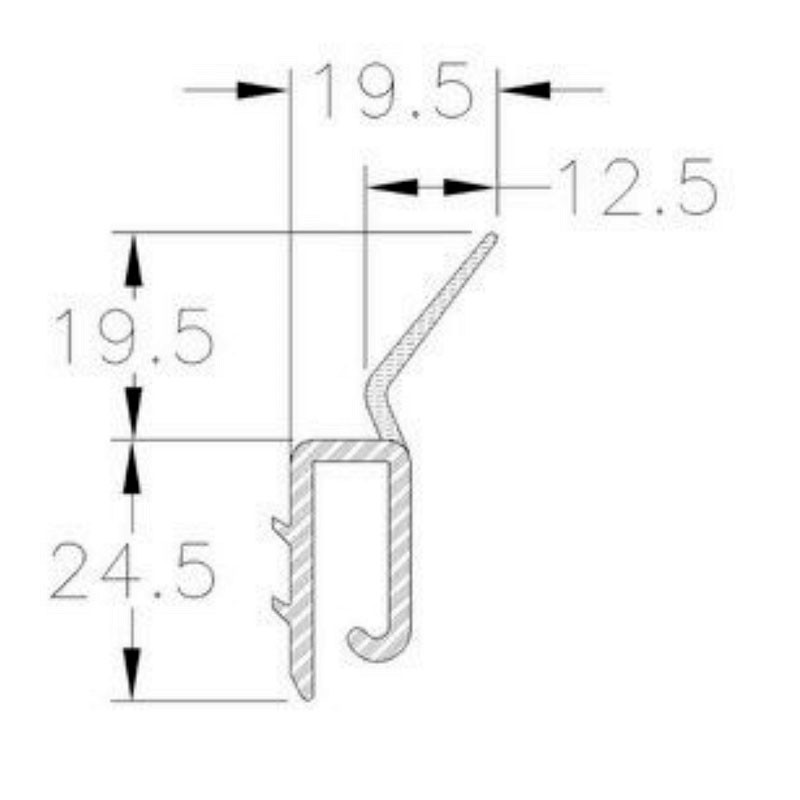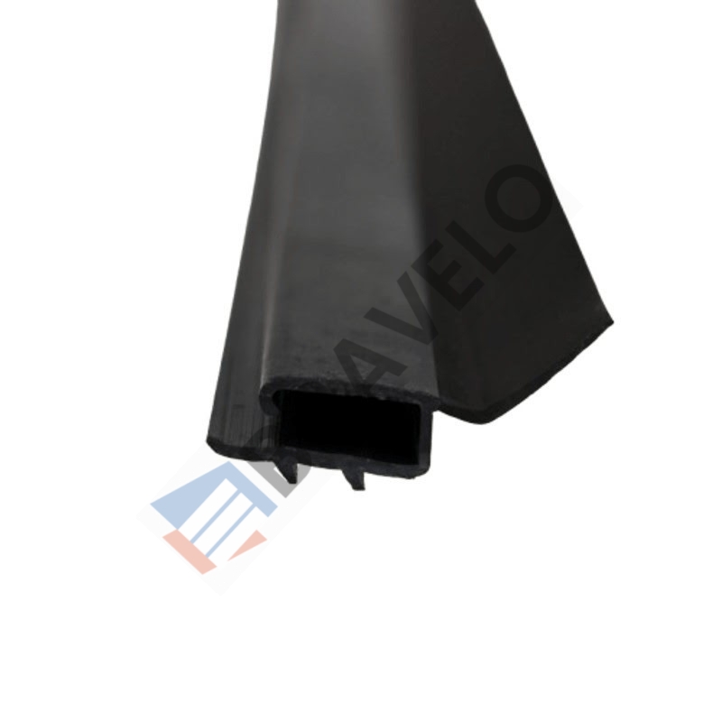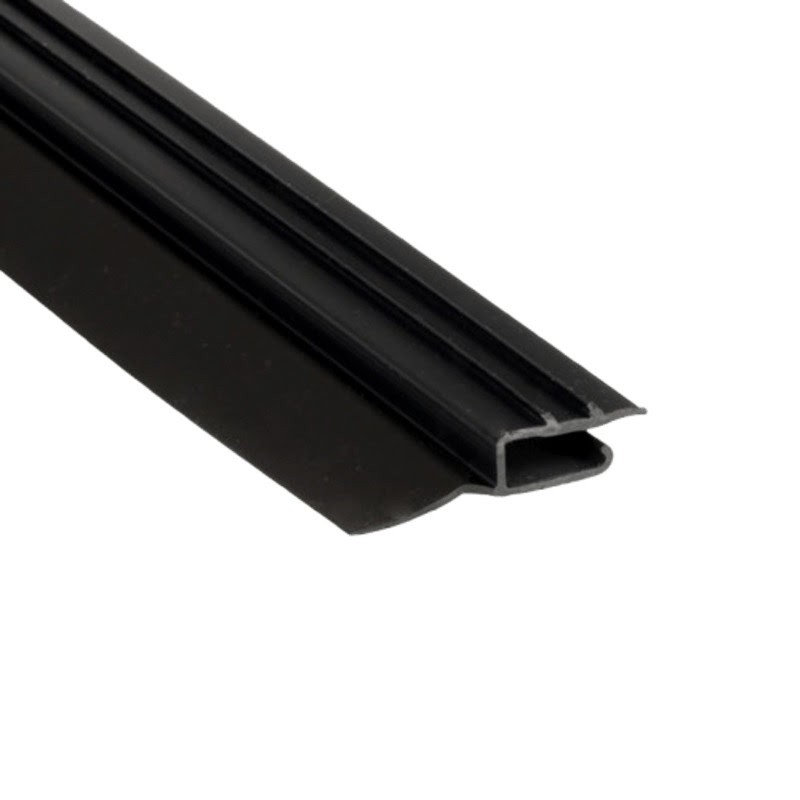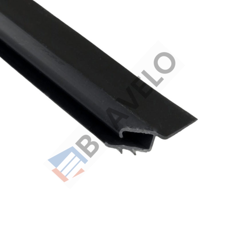 Uszczelka boczna z twardego, czarnego PVC z wtopioną elastyczną wargą do prowadnic pionowych